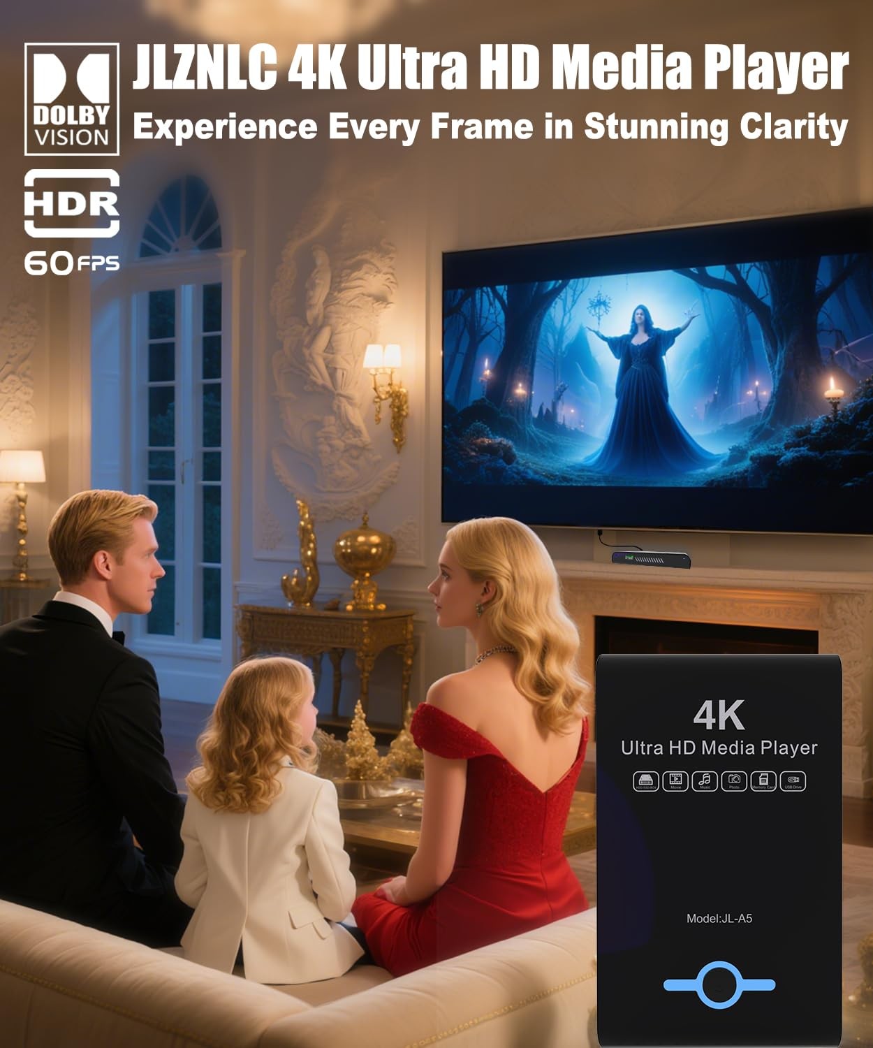 Compact 2‑in‑1 4K Ultra HD media player with built‑in 2"/2.5"/3" SATA HDD enclosure — perfect for home entertainment or digital signage.
